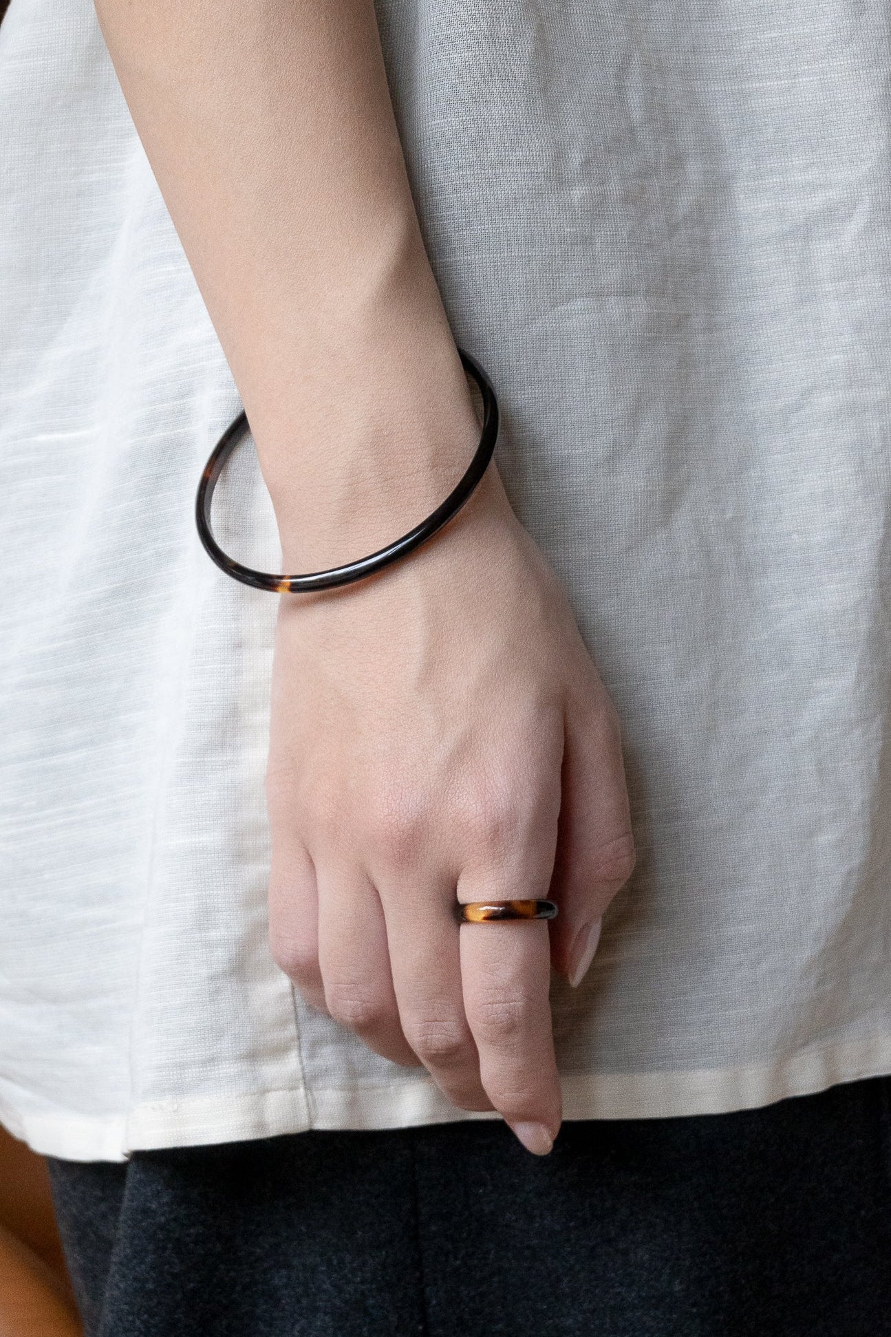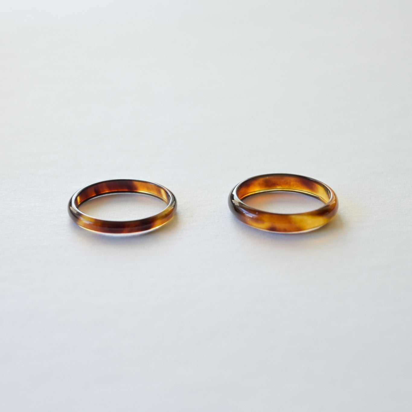 軽い付け心地で肌になじむ4mm幅の鼈甲リング。